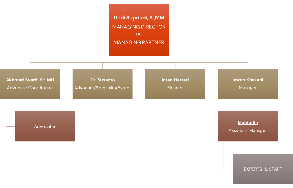 Tim manajerial profesional yang mengelola operasional, keuangan, pemasaran,dan strategi Kantor Hukum DEDI SUPRIADI & PARTNERS LAW FIRM.